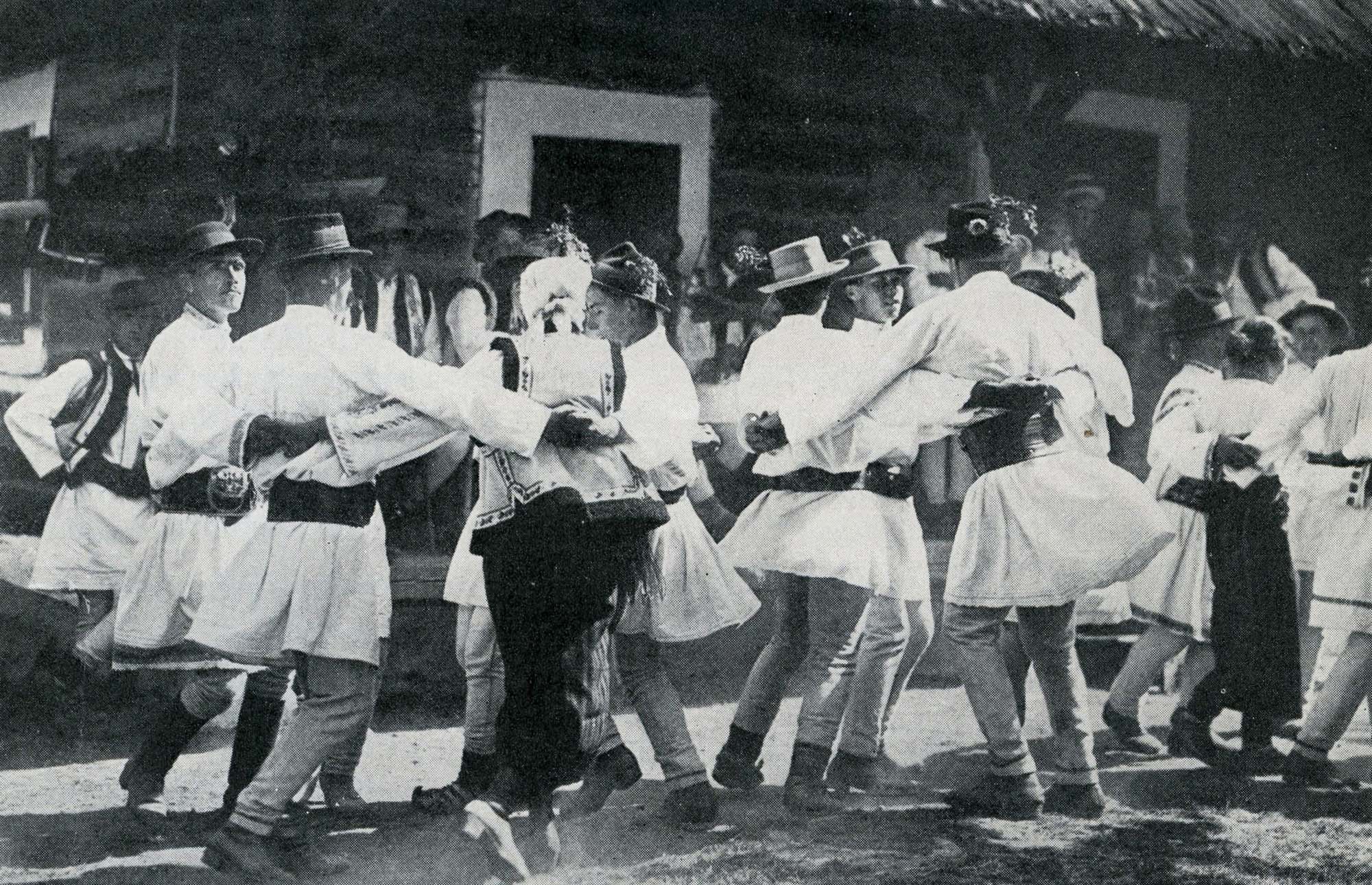 On a fête day in the Carpathians, peasants enjoy a popular dance considerably more rapid than the measured movements of the hora. “She dances at the dance” is a peasant way of saying a young woman has reached marriageable age. In this case there is a decided dearth of girls.