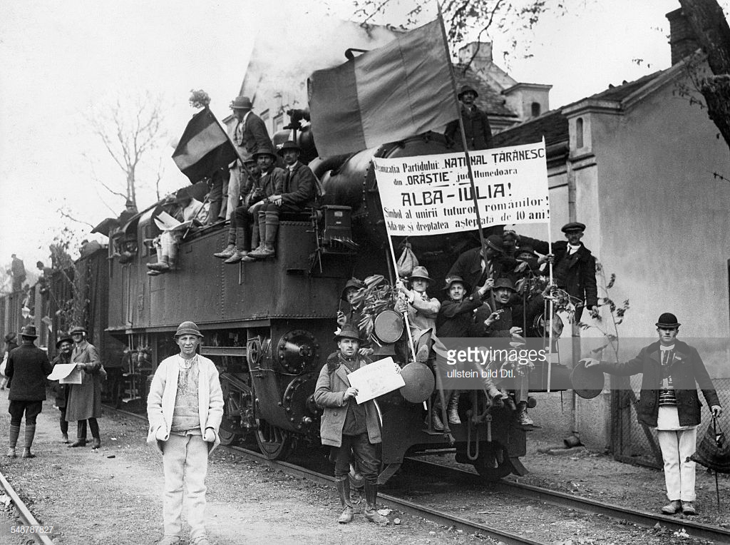 Governmental crisis in Alba Iulia (Romania ) after the death of the King Ferdinand of Romania (1927) and the abdication of Carol II of Romania. Assembly of the members of the National Farmers' Party (PNT). Men on the wagons of railway – 1928. Published by: 'Berliner Illustrirte Zeitung' 22/1928 Vintage property of ullstein bild.