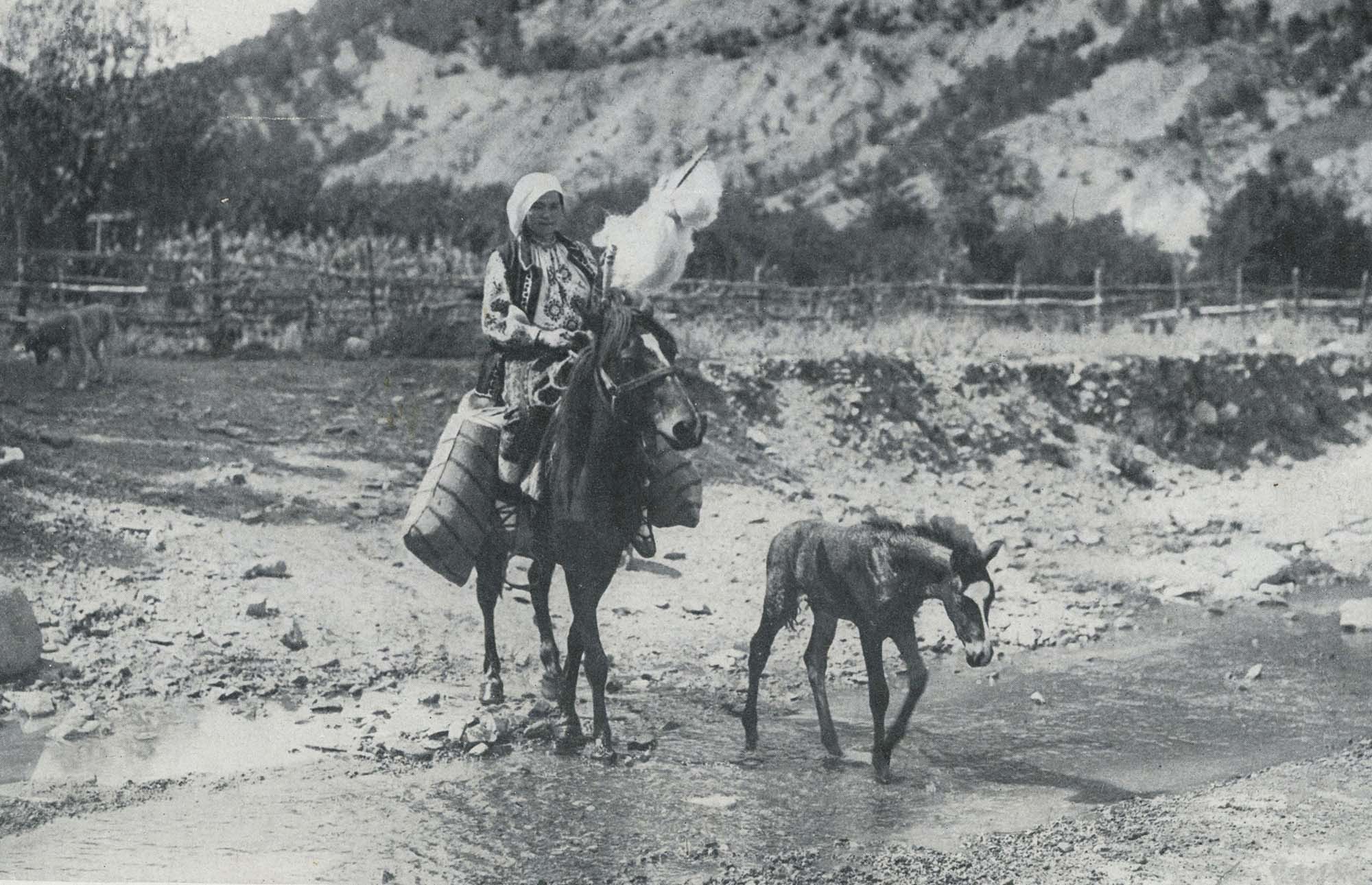 It followed her to the market one day – through the southern Carpathian foothills, in the Old Kingdom of Romania. The woman astride her small mountain pony has brought the inevitable mass of wool and she spins worsted as she rides.