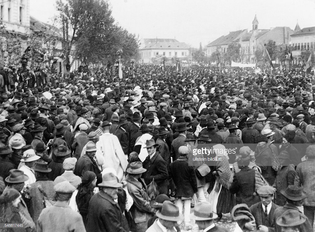 Governmental crisis in Alba Iulia (Romania) after the death of the King Ferdinand of Romania (1927) and the abdication of Carol II of Romania. Assembly of the members of the National Farmers' Party (PNT). - 1928 - Photographer: Josef Berman Vintage property of ullstein bild.