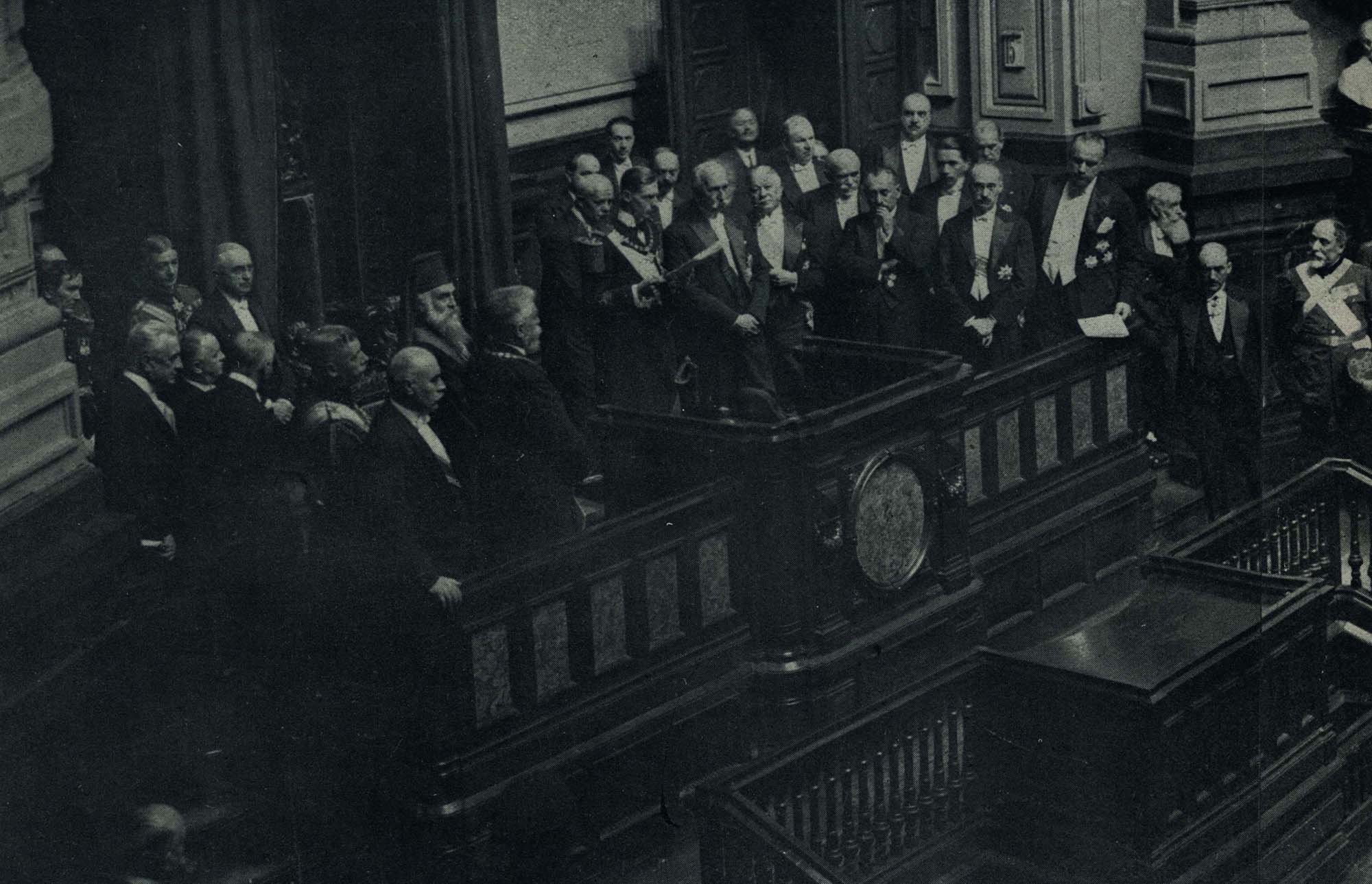 This photograph was published as a spread in Romania Illustrated (Romania Ilustrata) – a monthly image rich publication in 4 languages - in November 1927. It depicts His Royal Highness, Prince Nicholas, reading the message for the opening of the Parliament.